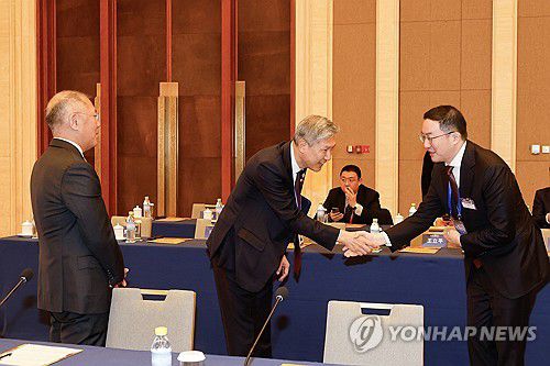 한·중 비즈니스 포럼, 인사하는 노재헌 대사와 구광모 회장 |