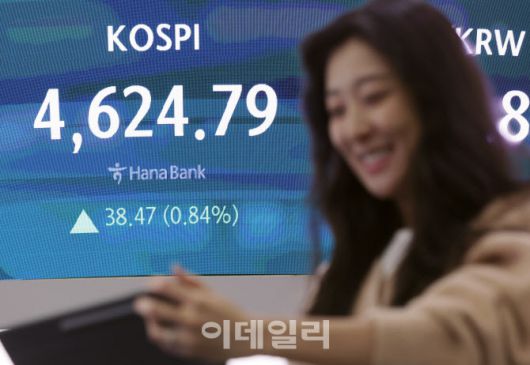 [포토]코스피 0.84% 오른 4624.79 마감…종가 최고치 재경신