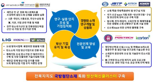 전북도 관계자는 "전북은 탄소, 수소, 이차전지 등 첨단소재 분야에서 국내 최고 수준의 연구개발 역량과 산업 생태계를 보유하고 있다"며 "클러스터를 통해 지역 기업들의 글로벌 방산시장 진출과 국가 안보 강화에 기여하겠다"고 밝혔다.