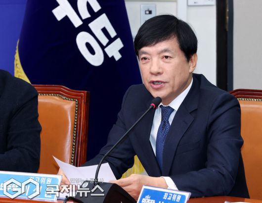 (서울=국제뉴스) 이성윤 더불어민주당 최고위원이 12일 오전 서울 여의도 국회에서 열린 최고위원회의에서 발언을 하고 있다./사진=이용우 기자