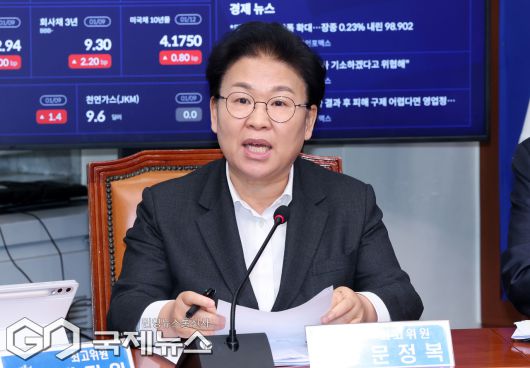(서울=국제뉴스) 문정복 더불어민주당 최고위원이 12일 오전 서울 여의도 국회에서 열린 최고위원회의에서 발언을 하고 있다./사진=이용우 기자