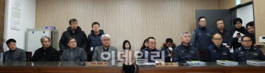[이데일리 이영훈 기자] 서울 시내버스 노조 파업 예고일을 하루 앞둔 12일 서울지방노동위원회에서 열린 특별조정위원회 사후 조정회의에 사측인 김정환 서울시버스운송사업조합(서울시버스조합) 이사장(왼쪽 네 번째부터)이 노사 대표인 박점곤 서울시버스노동조합(버스노조) 위원장이 참석하고 있다.