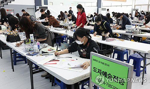 (부산=연합뉴스) 강선배 기자 = 12일 부산 사하구 동아대 승학캠퍼스 예술체육대학 1관에서 열린 2026학년도 정시모집 미술학과 실기고사에 참가한 수험생들이 실력을 뽐내고 있다. 2026.1.12
