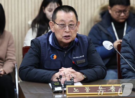 (서울=뉴스1) 구윤성 기자 = 박점곤 서울시 버스노동조합 위원장이 12일 오후 서울 영등포구 서울지방노동위원회에서 열린 특별조정위원회 사후 조정회의에서 발언하고 있다. 2026.1.12/뉴스1kysplanet@news1.krCopyright ⓒ 뉴스1. All rights reserved. 무단 전재 및 재배포, AI학습 이용 금지.