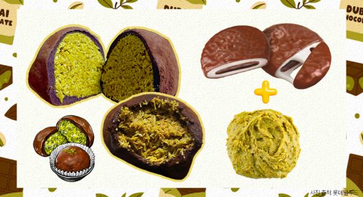 이 공식을 가장 간단하게 구현한 것이 찰떡파이였는데요. 초콜릿 코팅과 쫀득한 떡 구조를 이미 갖춘 찰떡파이에 피스타치오 스프레드를 넣는 것만으로, 두쫀쿠의 70~80%를 구현할 수 있었죠. 초코파우더를 뿌려 냉동실에 잠깐 넣어 ‘얼먹’하면 식감은 더 살아났습니다.