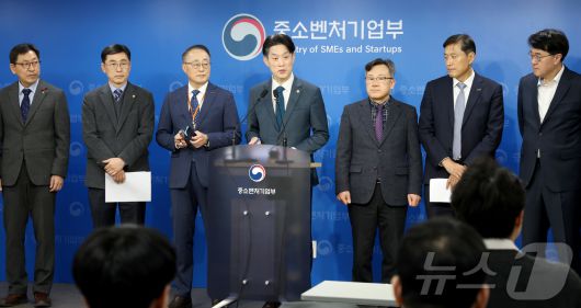 (세종=뉴스1) 김기남 기자 = 노용석 중소벤처기업부 제1차관이 12일 세종시 정부세종청사 중소벤처기업부에서 중소벤처기업진흥공단, 소상공인시장진흥공단, 기술보증기금 등 총 15개의 공공기관 및 유관기관의 2026년 업무보고 내용을 발표하고 있다. 2026.1.12/뉴스1