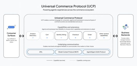 구글은 11일(현지시간) 미국 전미소매협회(NRF) 컨퍼런스에서 '유니버설 커머스 프로토콜(UCP)'을 공개하며, 기존처럼 단계별로 서로 다른 에이전트나 시스템을 연동할 필요 없이 하나의 표준으로 모든 에이전트가 상호작용할 수 있게 된다고 설명했다.
