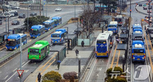 (서울=뉴스1) 이호윤 기자 = 서울시 시내버스 파업을 예고한 12일 서울 중구 서울역 환승센터에서 버스가 오가고 있다. 서울 시내버스 노조는 교섭 결렬시 13일 첫차부터 파업에 돌입할 예정이다. 2026.1.12/뉴스1
