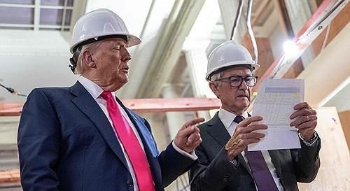 연준 개보수 현장을 방문한 도널드 트럼프 미국 대통령과 제롬 파월 연준 의장 [사진=AFP·연합뉴스] |