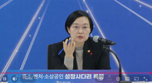 한성숙 중소벤처기업부 장관이 12일 업무보고에서 발언하고 있다. [사진=유튜브 화면 갈무리] 2026.01.12 rang@newspim.com |
