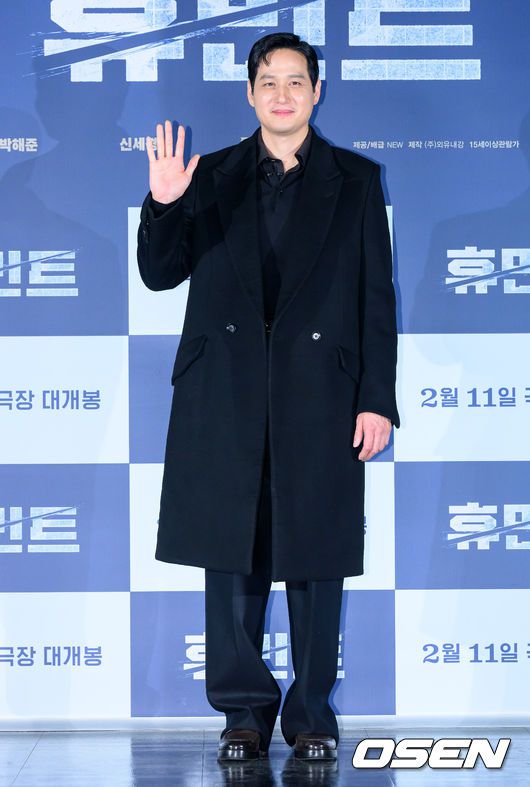 [OSEN=지형준 기자] 12일 오전 서울 광진구 자양동 롯데시네마 건대입구에서 영화 '휴민트' 제작보고회가 열렸다. 영화 ‘휴민트’는 비밀도, 진실도 차가운 얼음 바다에 수장되는 블라디보스토크에서 서로 다른 목적을 가진 이들이 격돌하는 이야기. 배우 박해준이 포토타임을 하고 있다. 2026.01.12 / jpnews@osen.co.kr