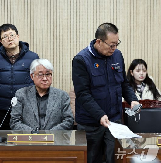 (서울=뉴스1) 구윤성 기자 = 김정환 서울시버스운송사업조합 이사장(왼쪽)과 박점곤 서울시 버스노동조합 위원장이 12일 오후 서울 영등포구 서울지방노동위원회에서 열린 특별조정위원회 사후 조정회의에서 자리에 앉고 있다. 2026.1.12/뉴스1kysplanet@news1.krCopyright ⓒ 뉴스1. All rights reserved. 무단 전재 및 재배포, AI학습 이용 금지.
