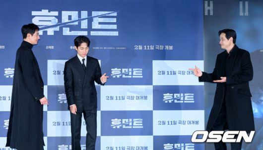 [OSEN=지형준 기자] 12일 오전 서울 광진구 자양동 롯데시네마 건대입구에서 영화 '휴민트' 제작보고회가 열렸다. 영화 ‘휴민트’는 비밀도, 진실도 차가운 얼음 바다에 수장되는 블라디보스토크에서 서로 다른 목적을 가진 이들이 격돌하는 이야기. 배우 조인성, 박정민, 박해준이 포토타임을 하고 있다. 2026.01.12 / jpnews@osen.co.kr