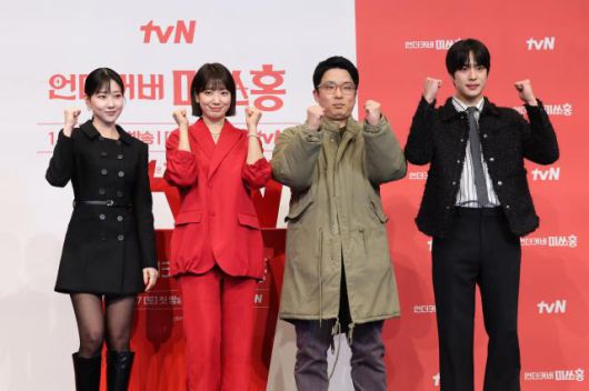 【图片来源 韩联社】 12日,tvN电视剧《卧底洪小姐》制作发布会在首尔九老区The Link臻品之选酒店举行,演员河允庆(左起)、朴信惠、导演朴善浩及演员曹瀚结出席并合影留念。 傅璐瑶 记者 royo0624@ajunews.com - Copyright ⓒ [아주경제 ajunews.com] 무단전재 배포금지 -