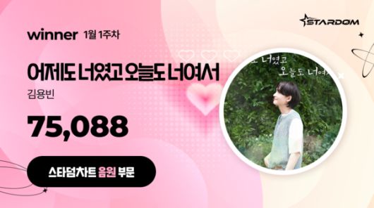 김용빈은 26년 1월 1주차 '스타덤 차트' 트로트 부문에서도 6주 연속 1위를 차지하며 절대강자의 면모를 보여줬다. 아이돌 부문에서는 피프티피프티와 시크릿넘버가 공동 1위를 차지했다. 피프티피프티는 이 부문 12주 연속 1위다. 배우 부문에서는 김수현이 13주 연속 1위를 차지하는 기염을 토했다.