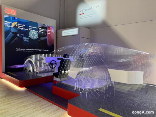 하얀 커튼 안으로 들어서자 3M 최신 기술이 모습을 드러냈다. 3M은 CES 2026에서 자동차 산업의 주요 트렌드와 자사 소재·디지털 솔루션을 집중적으로 소개했다. 전동화(EV)는 물론, 소프트웨어 정의 차량(SDV) 및 배터리 안전, 미래형 인테리어 등 다양한 영역에서 3M의 최신 기술력을 확인할 수 있었다.