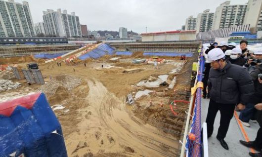 오세훈 서울시장이 12일 서울 노원구 월계동 광운대역 물류부지 공사현장을 찾아 HDC현대산업개발이 시공중인 'SEOUL ONE' 현장 시찰을 하고 있다. <ⓒ투자가를 위한 경제콘텐츠 플랫폼, 아시아경제(www.asiae.co.kr) 무단전재 배포금지>