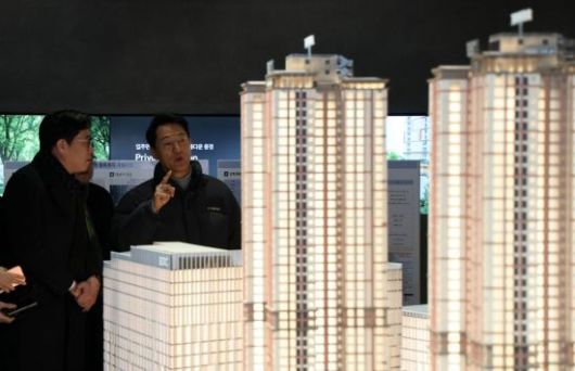 오세훈 서울시장이 12일 서울 노원구 월계동 광운대역 물류부지 공사현장을 찾아 HDC현대산업개발이 시공중인 'SEOUL ONE' 현장에 마련된 모델 하우스를 둘려보고 있다.