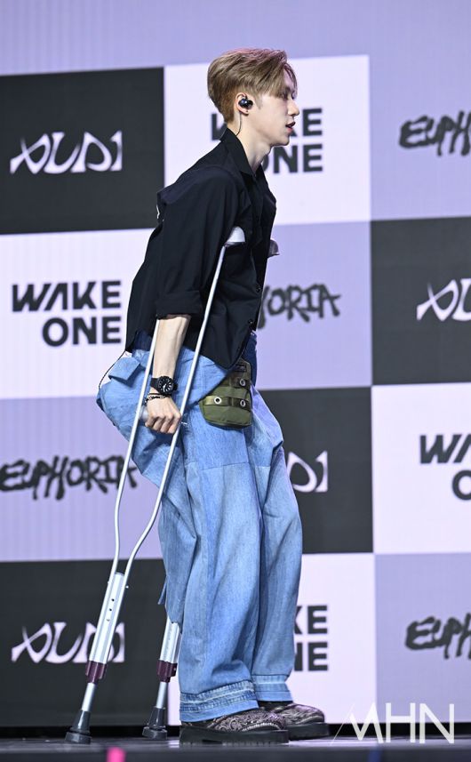[포토] 알파드라이브원 아르노 '데뷔 무대에 목발 투혼'