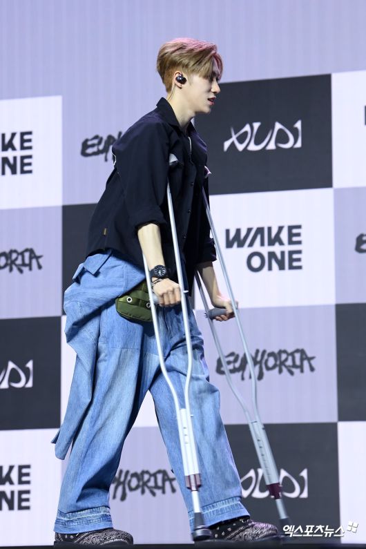 알파드라이브원 아르노 '목발 짚고 부상 투혼'[엑's HD포토]