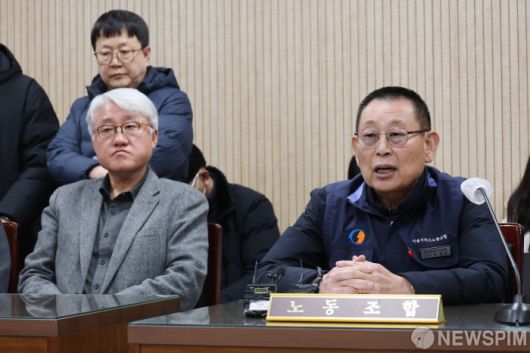 [서울=뉴스핌] 이형석 기자 = 박점곤 서울시버스노동조합 위원장이 12일 오후 서울 영등포구 서울지방노동위원회에서 열린 특별조정위원회 사후 조정회의에서 발언을 하고 있다. 2026.01.12 leehs@newspim.com