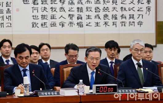 아시아투데이 이병화 기자 = 정성호 법무부 장관이 12일 국회에서 열린 법제사법위원회 전체회의에서 의원들의 질의에 답하고 있다.