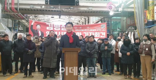 [영천(경북)= 이데일리 홍석천 기자] 김병삼 전 대구경북경제자유구역청장이 전통시장에서 영천시장 출마를 선언했다. 김 전 청장은 12일 장날을 맞은 영천공설시장 곰탕골목에서 시장 상인과 지역 주민 200여명이 지켜보는 가운데 6월 지방선거 출마의 뜻을 밝혔다.