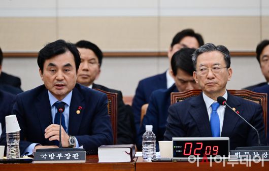 아시아투데이 이병화 기자 = 안규백 국방부 장관이 12일 국회에서 열린 법제사법위원회 전체회의에서 의원들의 질의에 답하고 있다.