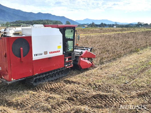 [영암=뉴시스] 영암군 군서농협이 조성한 '국산콩 우수 생산단지'에서 기계수확이 이뤄지고 있다. (사진=전남도 제공) 2022.08.30. photo@newsis.com |