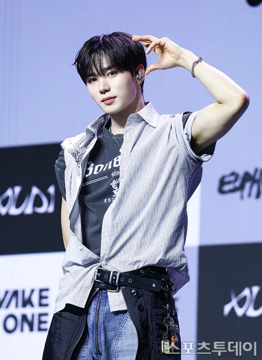 [스포츠투데이 팽현준 기자] 그룹 알파드라이브원(ALPHA DRIVE ONE)의 준서가 12일 서울 한남동 블루스퀘어에서 열린 데뷔 미니 앨범 'EUPHORIA' 발매 쇼케이스에서 포토타임을 갖고 있다.
