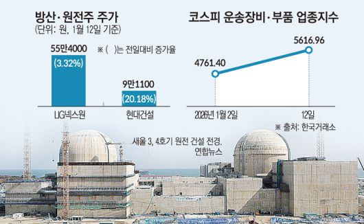 방산주와 원전주가 미국발 훈풍을 타고 새해 증시에서 동시에 불기둥을 세웠다. 지정학적 긴장 고조와 미국의 국방비 증액 기조, 인공지능(AI) 확산에 따른 전력 수요 증가 기대가 맞물리며 매수세가 집중됐다.