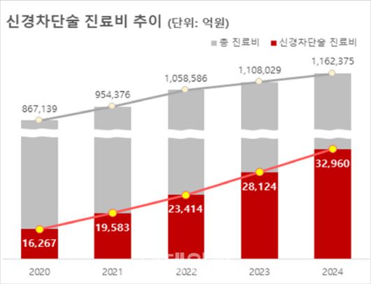 이러한 중복 시술은 건강보험 재정 누수로 이어진다. 국민건강보험공단에 따르면 최근 5년간(2020~2024년) 요양기관에서 시행된 신경차단술 진료비가 203% 늘었다. 연 15회 제한인 신경차단술을 한 해 1124회로 받은 환자도 발생한 것으로 확인됐다.