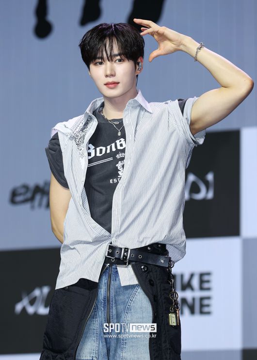 [스포티비뉴스=서울, 곽혜미 기자] 알파드라이브원 미니 1집 'EUPHORIA(유포리아)' 발매 기념 쇼케이스가 12일 오후 서울 용산구 한남동 블루스퀘어에서 열렸다. 알파드라이브원 준서가 포즈를 취하고 있다. <저작권자 ⓒ SPOTV NEWS. 무단전재 및 재배포 금지>