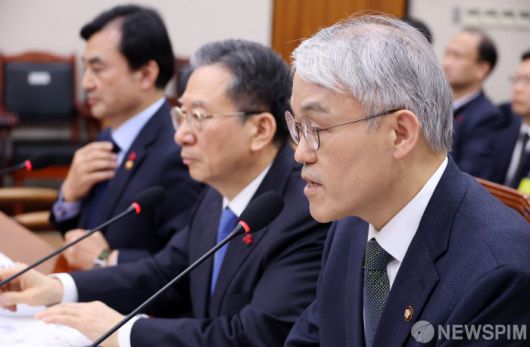 [서울=뉴스핌] 정일구 기자 = 천대엽 법원행정처장이 12일 오후 서울 여의도 국회에서 열린 법제사법위원회 전체회의에서 의원 질의에 답하고 있다. 2026.01.12 mironj19@newspim.com