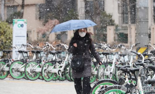 [서울=뉴스핌] 이형석 기자 = 12일 오후 서울 여의도 인근에서 한 시민이 내리는 눈을 맞으며 발걸음을 재촉하고 있다. 2026.01.12 leehs@newspim.com |