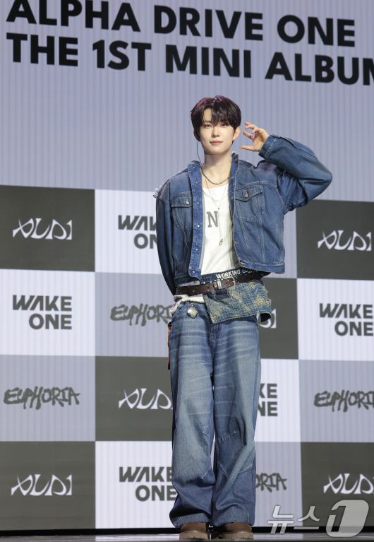 (서울=뉴스1) 권현진 기자 = 그룹 알파드라이브원(ALD1)의 건우가 12일 서울 용산구 블루스퀘어 SOL트래블홀에서 열린 미니 1집 'EUPHORIA'(유포리아) 발매 쇼케이스에서 포즈를 취하고 있다. 2026.1.12/뉴스1
