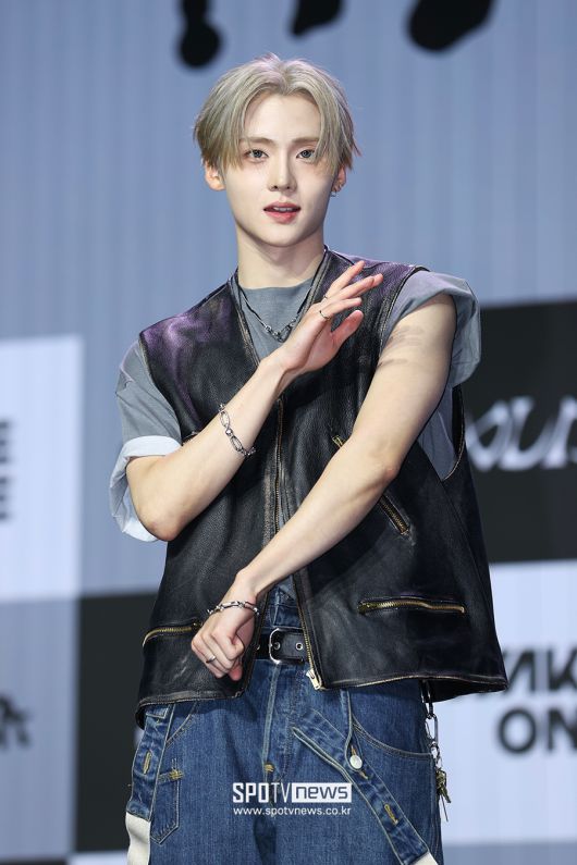 [스포티비뉴스=서울, 곽혜미 기자] 알파드라이브원 미니 1집 'EUPHORIA(유포리아)' 발매 기념 쇼케이스가 12일 오후 서울 용산구 한남동 블루스퀘어에서 열렸다. 알파드라이브원 상원이 포즈를 취하고 있다. <저작권자 ⓒ SPOTV NEWS. 무단전재 및 재배포 금지>