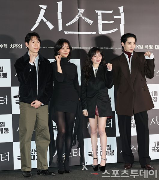 [스포츠투데이 권광일 기자] 진성문 감독, 배우 차주영, 정지소, 이수혁이 12일 오후 서울 용산구 CGV 용산아이파크몰에서 열린 영화 '시스터' 언론시사회에 참석해 포즈를 취하고 있다. 2026.01.12.