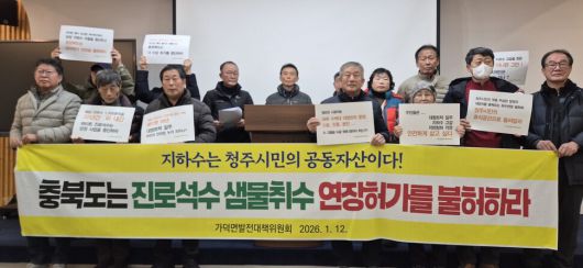 가덕면 이장단협의회 등 가덕 주민 모임 6곳이 꾸린 가덕면 발전대책위원회(가덕면 대책위)는 12일 충북도청에서 한 기자회견에서 “30여년 물장사를 해 온 하이트 진로석수(진로석수)가 샘물 개발 허가 연장 신청을 했다. 지하수는 공공 자산인데 대기업의 사적 이익에만 쓰인 것이 개탄스럽다. 샘물 개발 허가권을 지닌 충북도, 공장 가동·운영·관리권을 지닌 청주시는 개발 허가 연장을 불허하라”고 밝혔다.