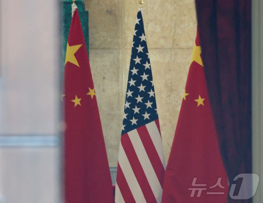 10일 미국과 중국의 무역 협상 장소인 영국 런던 랭커스터 하우스에 양국의 국기인 성조기와 오성홍기가 비치돼 있다. 2025.6.10 ⓒ 로이터=뉴스1 ⓒ News1 강민경 기자 |