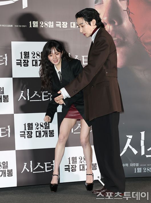 [스포츠투데이 권광일 기자] 배우 정지소, 이수혁이 12일 오후 서울 용산구 CGV 용산아이파크몰에서 열린 영화 '시스터' 언론시사회에 참석해 포즈를 취하고 있다. 2026.01.12. [스포츠투데이 권광일 기자 ent@stoo.com]