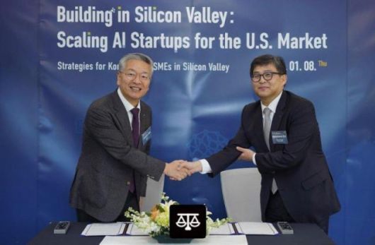 지난 8일(현지시간) 미국 실리콘밸리에 위치한 기술보증기금 실리콘밸리지점에서 진행된 북미 진출 국내기업 금융지원 확대를 위한 업무협약식에서 도건우 신한은행 미주지역본부장(오른쪽)과 김종호 기술보증기금 이사장이 기념촬영을 하고 있다. [사진=신한은행] |