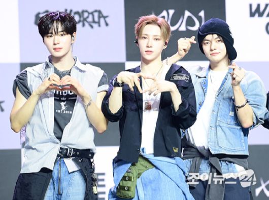 그룹 알파드라이브원 준서-아르노-리오가 12일 오후 서울 용산구 블루스퀘어 SOL트래블홀에서 열린 알파드라이브원(ALPHA DRIVE ONE) 첫 번째 데뷔 미니 1집 'EUPHORIA'(유포리아) 발매 기념 쇼케이스에 참석하고 있다. [사진=정소희 기자] |