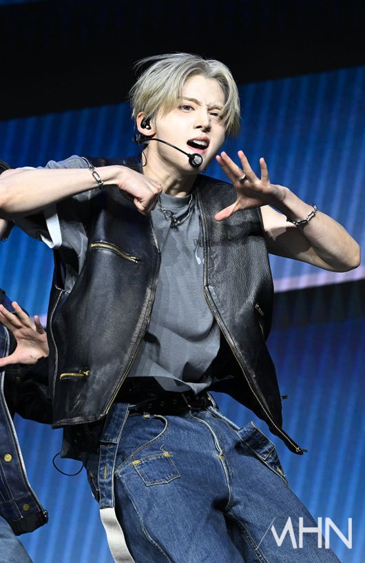 (MHN 이현지 기자) 그룹 알파드라이브원(ALPHA DRIVE ONE) 상원이 12일 오후 서울 용산구 블루스퀘어에서 진행된 미니 1집 'EUPHORIA'(유포리아) 발매 기념 쇼케이스에서 무대를 선보이고 있다.