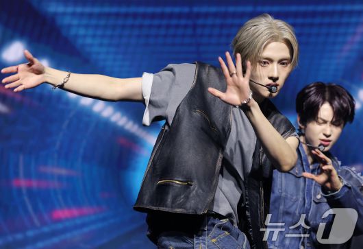 (서울=뉴스1) 권현진 기자 = 그룹 알파드라이브원(ALD1)의 상원이 12일 서울 용산구 블루스퀘어 SOL트래블홀에서 열린 미니 1집 'EUPHORIA'(유포리아) 발매 쇼케이스에서 선공개곡 ‘포뮬러’ 퍼포먼스를 선보이고 있다. 2026.1.12/뉴스1