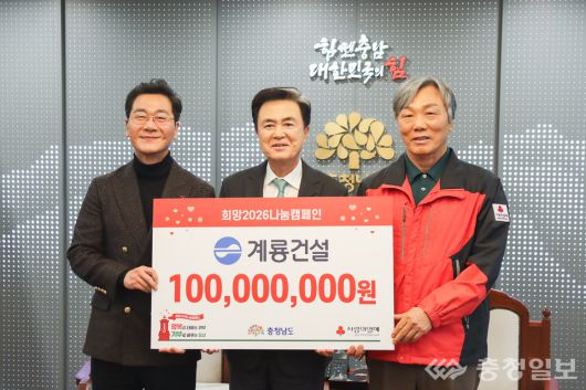 충남도청에서 진행된 이번 성금 전달은 행사보다 흐름에 가깝다. 계룡건설 이승찬 회장이 12일 충남도청을 찾아 김태흠 충청남도 도지사, 성우종 충남사회복지공동모금회장과 함께 '희망 2026 나눔캠페인' 성금 1억원을 전달한 장면은, 특정 시점의 이벤트라기보다 이어져 온 선택의 연장선이었다.
