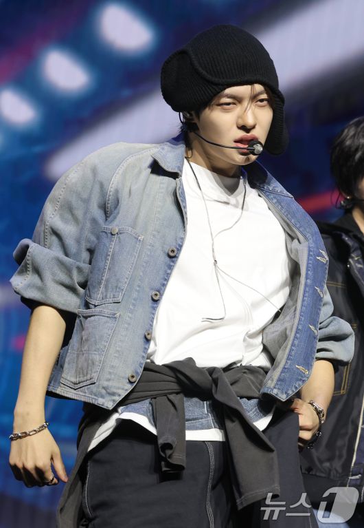 (서울=뉴스1) 권현진 기자 = 그룹 알파드라이브원(ALD1)의 리오가 12일 서울 용산구 블루스퀘어 SOL트래블홀에서 열린 미니 1집 'EUPHORIA'(유포리아) 발매 쇼케이스에서 선공개곡 ‘포뮬러’ 퍼포먼스를 선보이고 있다. 2026.1.12/뉴스1