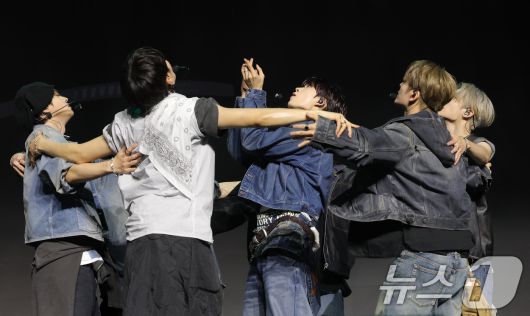 (서울=뉴스1) 권현진 기자 = 그룹 알파드라이브원(ALD1)의 이 12일 서울 용산구 블루스퀘어 SOL트래블홀에서 열린 미니 1집 'EUPHORIA'(유포리아) 발매 쇼케이스에서 선공개곡 ‘포뮬러’ 퍼포먼스를 선보이고 있다. 2026.1.12/뉴스1rnjs337@news1.krCopyright ⓒ 뉴스1. All rights reserved. 무단 전재 및 재배포, AI학습 이용 금지.