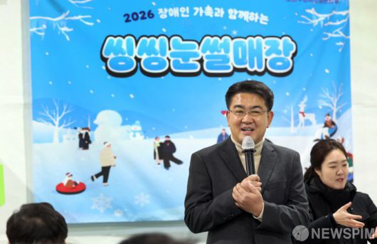 [서울=뉴스핌] 오승록 노원구청장이 12일 오전 서울 노원구 서울과학기술대학교 종합운동장에서 ‘2026 씽씽 눈썰매장 장애인 가족 초청 행사’에 참석해 인사말을 하고 있다. 노원구는 매년 겨울철 눈썰매장과 여름철 물놀이장을 하루 휴장해 장애인 가족이 안전하고 편안한 환경에서 여가를 즐길 수 있도록 초청 행사를 마련해 오고 있다. 이번 겨울에도 지역 내 장애인과 가족, 활동지원사 등 약 500여 명이 참여해 눈썰매와 다양한 겨울 놀이를 자유롭게 즐겼다.오승록 노원구청장은 “오늘 하루만큼은 장애인 당사자와 가족 여러분이 부담없이 편안하게 즐기며 소중한 추억을 쌓는 시간이 되길 바란다”며 “앞으로도 일상의 장벽을 낮춰 모두가 편안하게 여가를 즐길 수 있는 환경을 만들어가겠다”고 말했다. [사진=노원구청] 2026.01.12 photo@newspim.com
