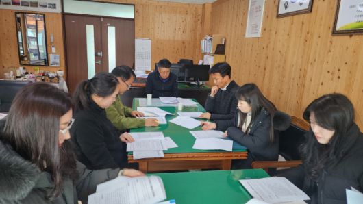 문정모 함평군 농업기술센터소장(가운데)이 9개 팀의 업무 계획보고회를 주재하고 있다. /함평군 |